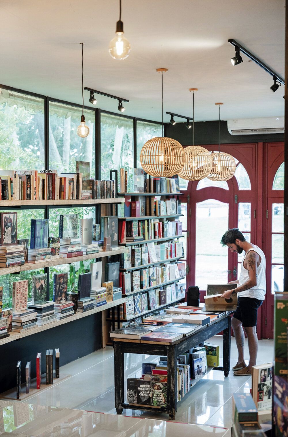 Bienvenida es una de las más recientes incorporaciones a la escena comercial y cultural de Punta del Este. Sobre la calle Pedragosa Sierra, rodeada de pinos marítimos, el diseño del espacio de esta librería tiene como eje principal el bosque.