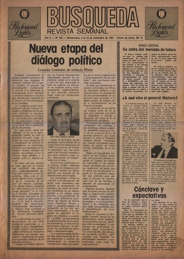 Con esos enfoques diversos, como decía el editorial de 1981 que daba paso a la “nueva etapa” de contacto semanal con nuestros lectores, esta edición busca ser un aporte para que estos ejerzan su derecho a estar informados. Dar testimonio semana a semana de lo que ocurre en el país ha sido una de las mayores contribuciones que ha hecho nuestra publicación en estos 35 años —desde aquel Nº 105 al Nº 1.887 de este jueves: esto es, registrar lo más fielmente posible la historia del Uruguay, siempre con información independiente y confiable. Eso sustentó y sustenta el eslogan de Búsqueda a lo largo del tiempo: el semanario de mayor circulación y con la información más respetada.
