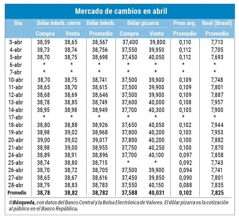 En abril, el tipo de cambio subió levemente (0,35% respecto a fin de marzo) e inició mayo con la misma tendencia. El martes 2 volvió a negociarse a un precio mayorista medio por encima de los $ 39 y ayer se afirmó otro poco por encima de ese nivel ($ 39,074).