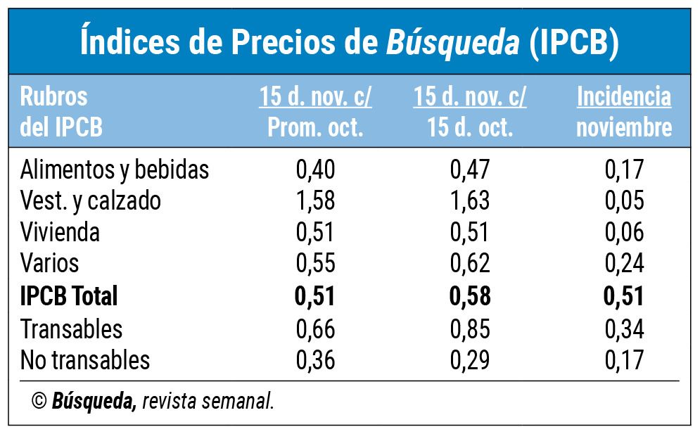 En caso de que tengas dudas o consultas podés escribir a [email protected] contactarte por WhatsApp acáEsa hipótesis es la que plantea la medición del Índice de Precios al Consumo de Búsqueda (IPCB) de la primera quincena del mes. En ese período la suba fue de 0,51% respecto al promedio de octubre y de 0,58% frente a la mitad inicial de ese mes. Esa última variación proyecta la tendencia inflacionaria para todo noviembre.