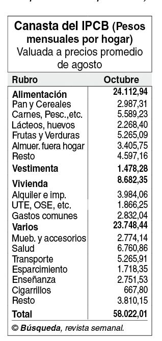 En octubre el IPCB había subido 0,66%. Eso determinó que la canasta familiar aumentara $ 380 y se ubicara en $ 58.022,01 en dicho mes.