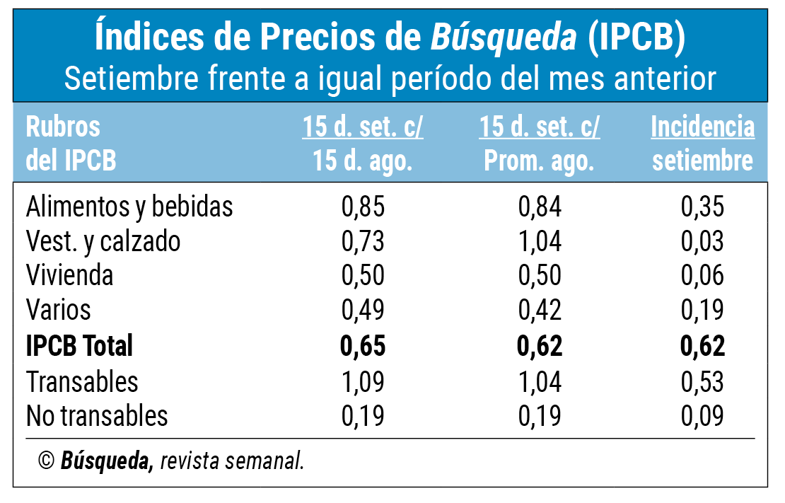 Los rubros de la canasta familiar de los uruguayos que tienen comercio internacional —denominados “transables”— explicaron, en gran medida, el alza del índice de Precios al Consumo de Búsqueda (IPCB) en la primera quincena de setiembre.