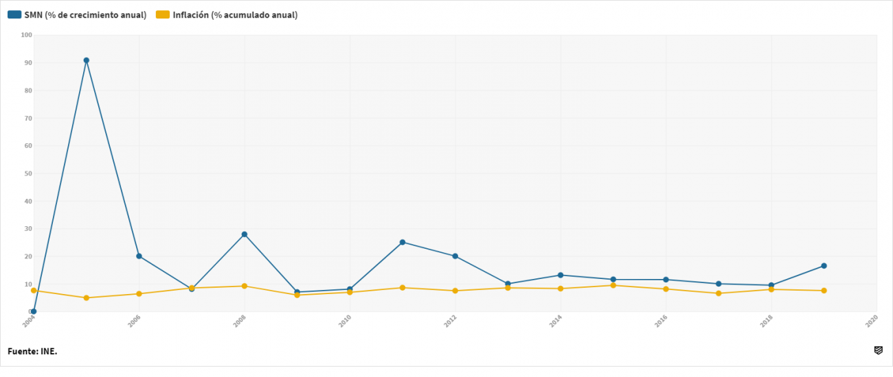 Esto se debe a que un aumento en moneda corriente podría empeorar el poder de compra si esa suba del SMN estuviera por debajo de la inflación.