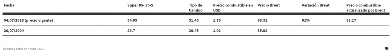 En julio de 2004, el punto más caro ese año, el litro costaba $ 29,70, según los datos de Ancap. Esa cifra llegó a $ 54,95 en enero de 2019, lo que se ajusta con las cifras de la publicación viral.